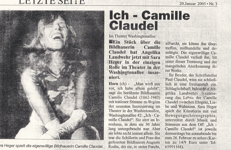Schauspielerin mit dem Solostück "Camille Claudel im Logensaal, Hamburg